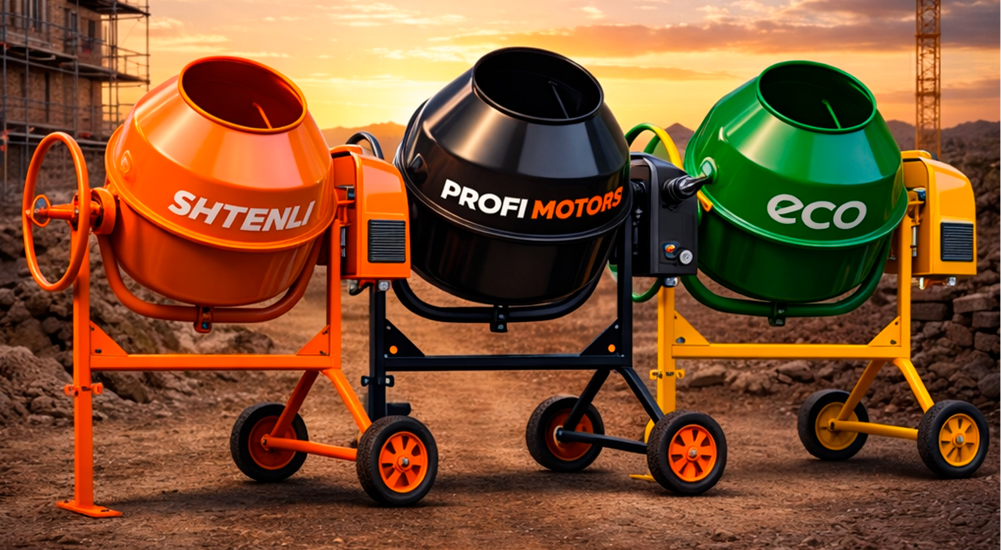 Бетоносмесители оснащены надежными двигателями и большим запасом мощности для своего объема